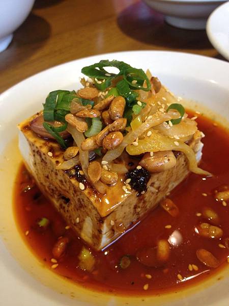 澆汁豆腐….這道菜算是特別,外頭澆汁真的香味撲鼻,再灑上花生葱花配上白豆腐真的是一絶